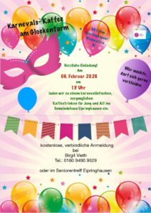 Herzliche Einladung zum karnevalistischen Kaffeetrinken. Als besonderes Highlight erwarten wir das Dabringhauser Dreigestirn!